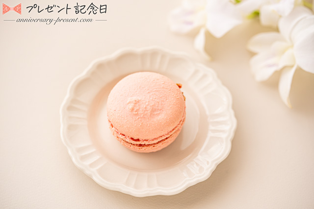 うすいピンク色がとってもかわいい、『桃薫の苺マカロン』。
